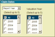 “Claims Dates Menu.” Select Accident /Report years